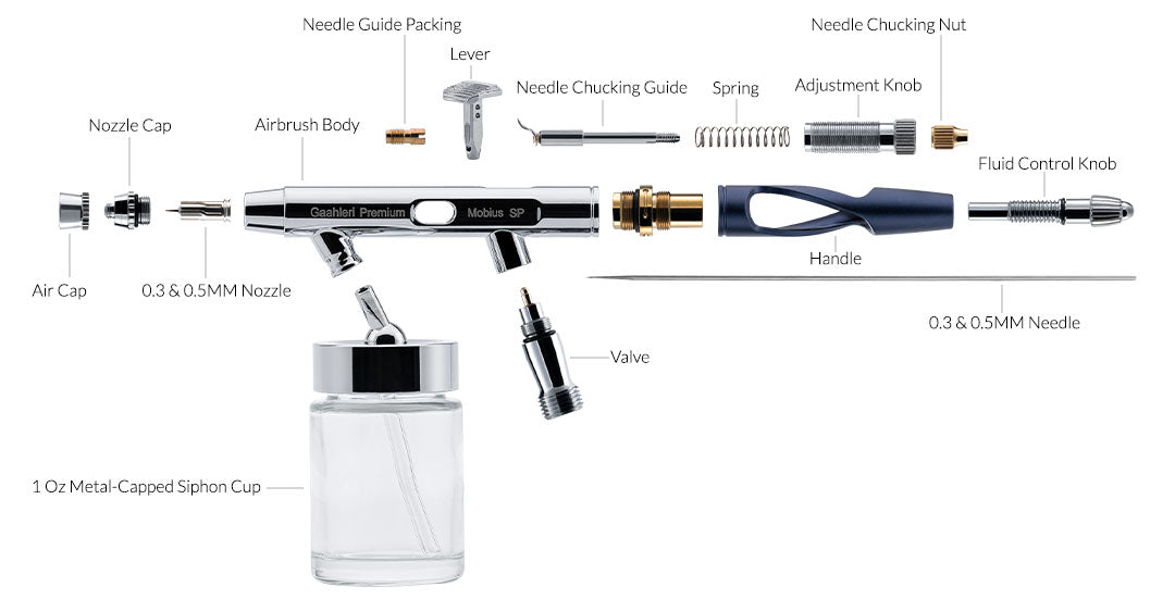 私たちは、修理、交換、メンテナンスを容易にするために、部品を個別に販売している数少ないエアブラシメーカーの一つであることを誇りに思っています。私たちの目標は、お客様の作業効率の向上、コスト削減、そしてエアブラシの寿命延長に貢献することです。