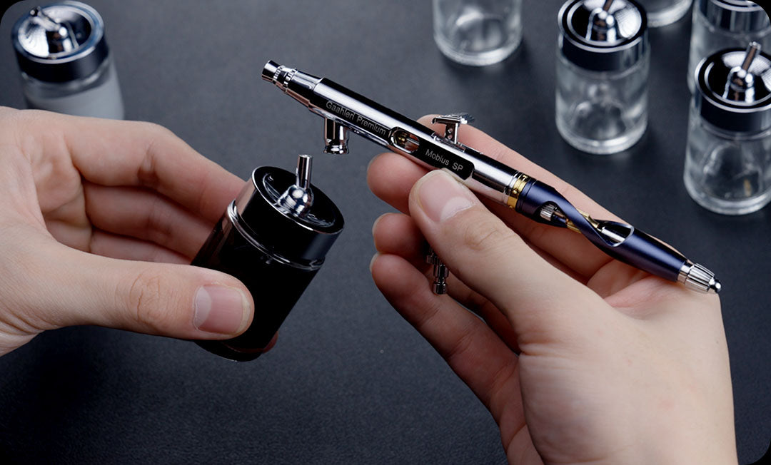 エアブラシが軽くなったことに加え、重心が前方に移動したため、Mobius SP は手に持ったときのバランスと快適さが向上し、全体的なスプレー操作性が向上しました。