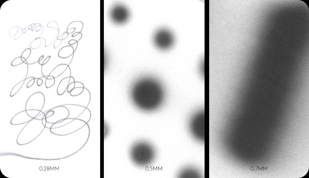 Swallowtailは、従来のトリガー操作による広範囲のスプレーと、0.28mmノズルによる精密な極細ラインの描画の両方に対応しています。0.7mmノズルに切り替えれば、極めて幅広いスプレーパターンを実現できます。まさに究極のオールインワンエアブラシです。