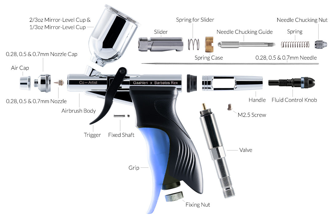 Gaahleri GHAC-Swallowtail & Rex エアブラシは、人間工学に基づいたデザイン、精度、汎用性を兼ね備えています。
