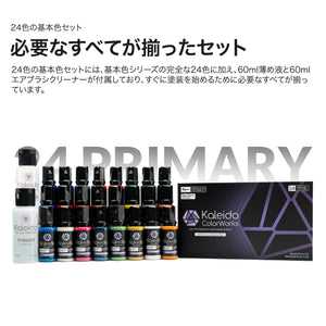 - カレイド塗料は水性アクリルのプレシンタイプで、0.3~0.5mmのエアブラシでボトルから直接使用できます。