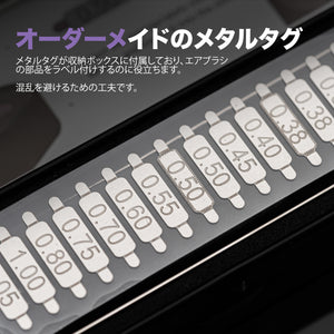 特注メタルタグ:付属のメタルタグでエアブラシパーツにラベルを付けて整理し、簡単に識別できます。ごちゃごちゃすることなく、ワークスペースをすっきりと保ちます。