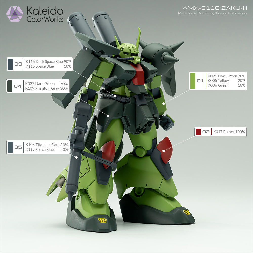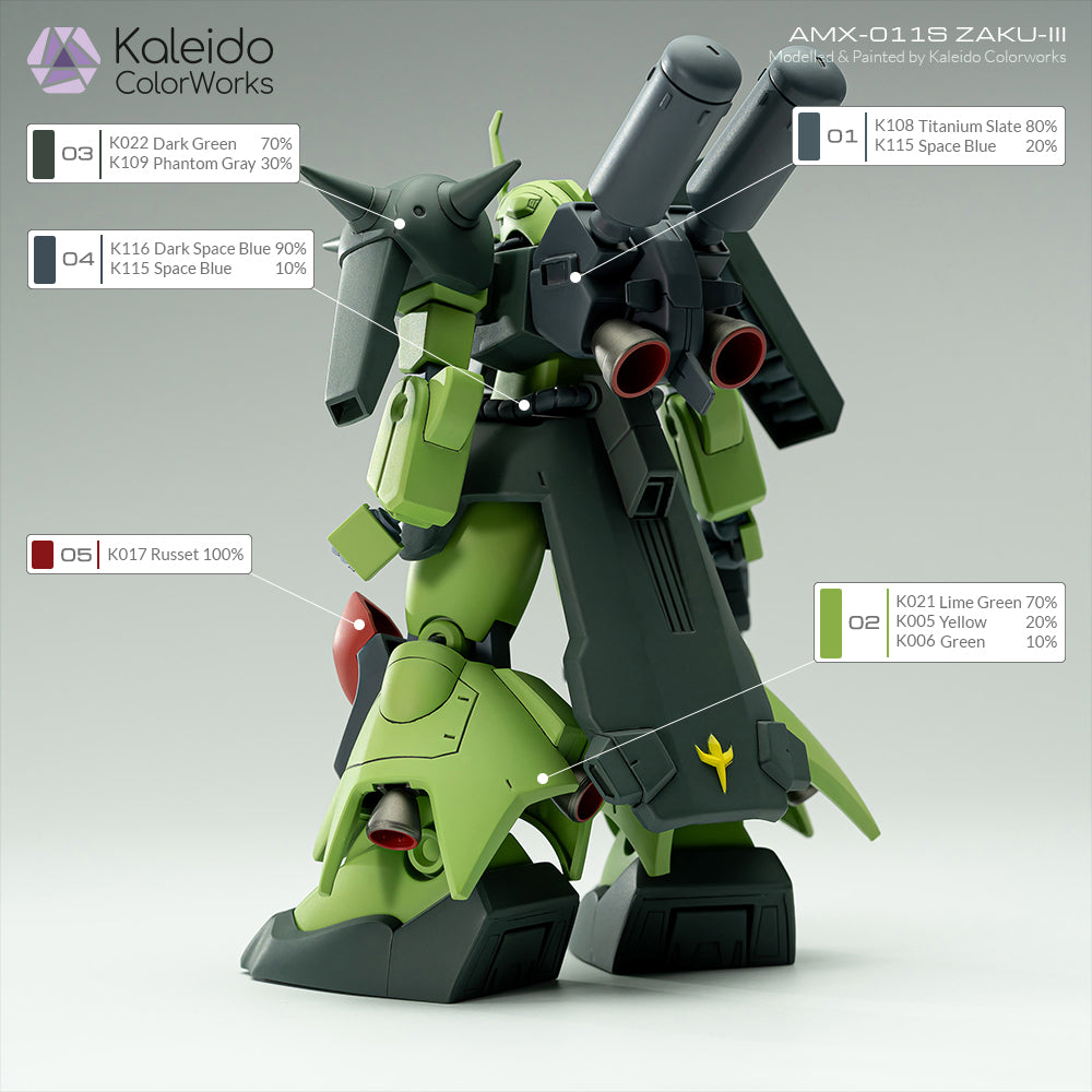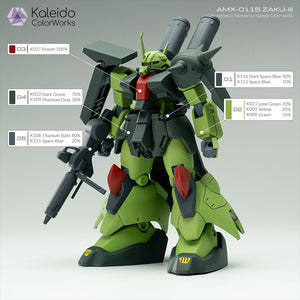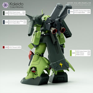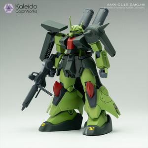 これは、バンダイのAMX-011S ZAKU-IIIガンダムモデルキットをカレイドカラーワークス - メカシリーズのカラーで再現/リペイントバージョンです。