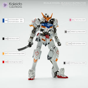 ガンダムバルバトスのプラモデルをカレイドカラーワークスの色で再現・リペイントしたものです。
