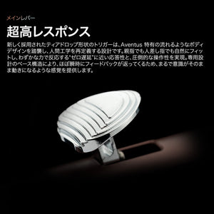 アベンタスは、ボディの流線型形状を反映した、再設計されたティアドロップ型トリガーを採用しました。親指または人差し指に自然にフィットし、以下の効果を発揮します。