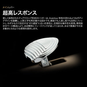 アベンタスは、ボディの流線型形状を反映した、再設計されたティアドロップ型トリガーを採用しました。親指または人差し指に自然にフィットし、以下の効果を発揮します。