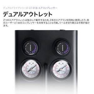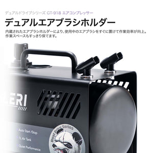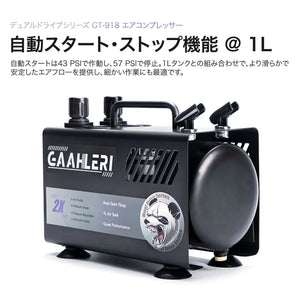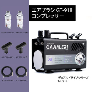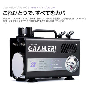 Gaahleri Dual Driveシリーズ エアブラシキットコンプレッサー GT-918は、パワー、汎用性、効率性を求めるエアブラシ愛好家やプロフェッショナル向けの究極のソリューションです。革新的な機能を多数備え、安定した静音で信頼性の高いエアブラシ体験を提供します。