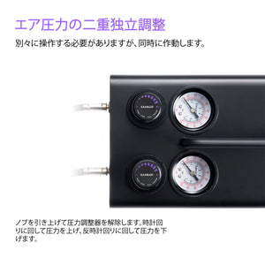 独立デュアルアウトレット:デュアルエアアウトレットは独立して動作するため、2台のエアブラシを同時に使用したり、他のユーザーと共有したりする際もツールの切り替え不要で便利です。