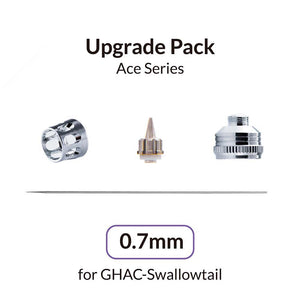 GHAC-Swallowtail エアブラシを 0.7mm アップグレード パックでアップグレードすると、強化されたコントロール、優れた霧化、そして詳細なエアブラシ作業と大規模なエアブラシ作業の両方に対応できる汎用性が得られます。