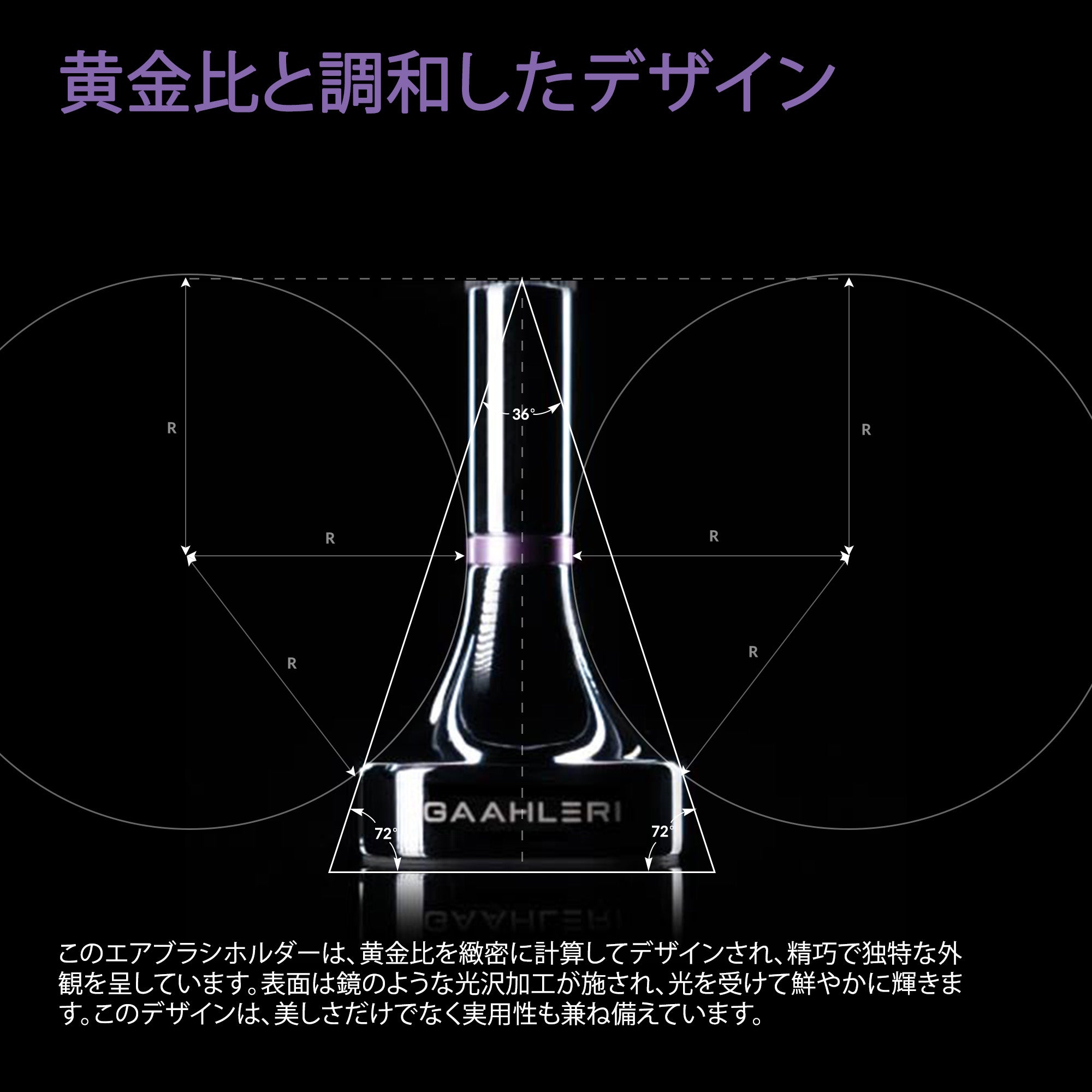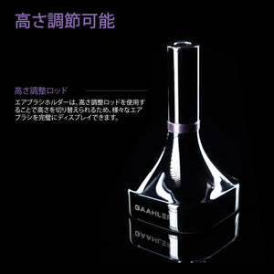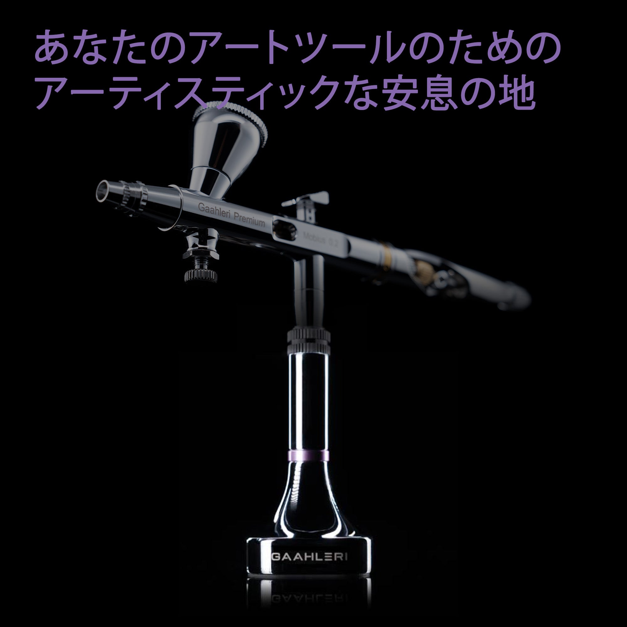 Gaahleriエアブラシホルダーは、エアブラシの使用中に安定性、整理整頓、そしてアクセスのしやすさを実現するよう専門的に設計されています。高品質の素材を一枚のブロックから削り出したこのホルダーは、耐久性と信頼性に優れ、エアブラシを長期間サポートします。さらに、エアブラシを高く配置できる延長ユニットが付属しており、柔軟性と快適性が向上します。