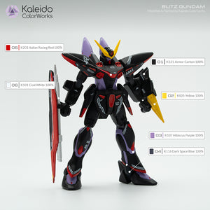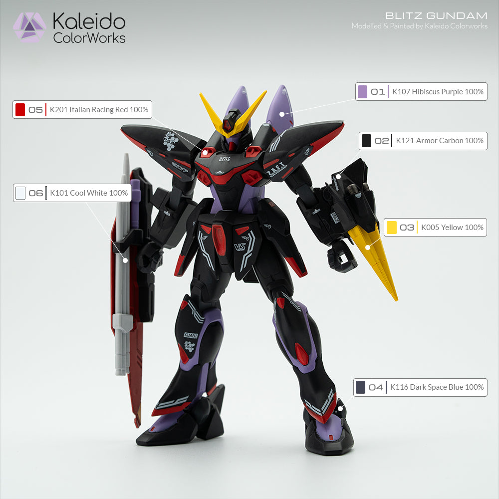 GAT-X207 ブリッツガンダムのプラモデルをカレイドカラーワークスの色で再現・リペイントしたものです。