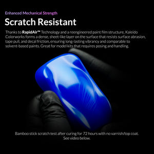 Kaleido Colorworks RapidAir™シリーズは、滑らかで高性能なスプレー塗装のために設計されたプレミアム水性アクリル塗料です。環境に優しく、無毒で、溶剤を一切含まないエコフレンドリーな処方で、工場出荷時に事前準備済みのため、そのまま使用することも、簡単に薄めて使用することも可能です。テクノロジーにより、水性塗料でよくある「遊び」「ムラ」「タレ」といった問題を解決し、均一でシート状の塗膜を形成します。 この先進的な処方は、強力な密着性、耐傷性、耐久性を発揮し、溶剤系塗料に敵対する光沢仕上げを実現します。 プライマーは不要で、ABS・PE・PC・レジン・ガラス・布・金属など幅広い素材に対応。