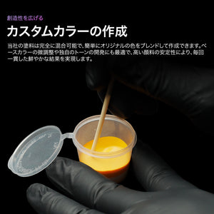 - 保管や輸送時に顔料が沈殿する場合がありますが、これは通常です。使用前によく振るか、撹拌棒やシェイカーで混ぜてからスプレーまたは調色してください。