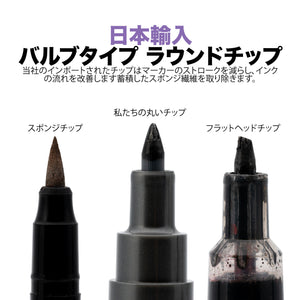 日本製バルブ式丸型チップ:輸入バルブ式丸型チップを採用したこのマーカーは、インクの流れをスムーズにし、マーカーのストロークを減らし、スポンジ繊維の蓄積を防ぎ、プロ並みの仕上がりを実現します。