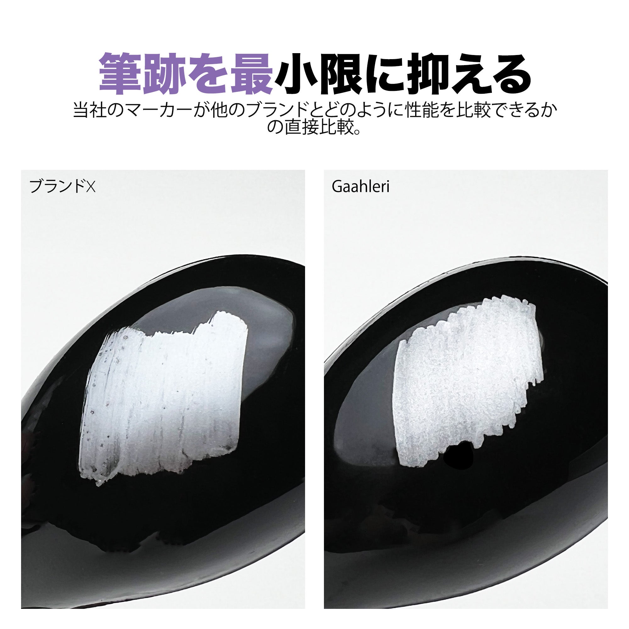 最小限のブラシストローク:最小限のブラシストロークで滑らかで均一な塗布を実現し、他のブランドに比べて優れたパフォーマンスを発揮して完璧なメタリック効果を実現します。