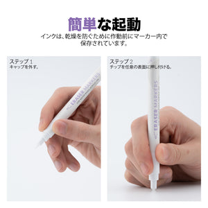 簡単にアクティブ化:インクはマーカー内に保存され、必要なときにのみアクティブ化されるため、早期乾燥を防ぎ、必要なときにマーカーをすぐに使用できます。