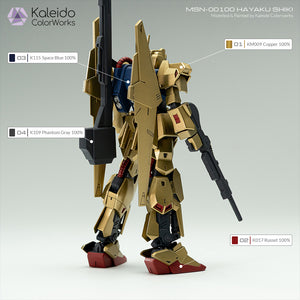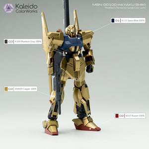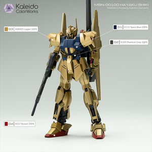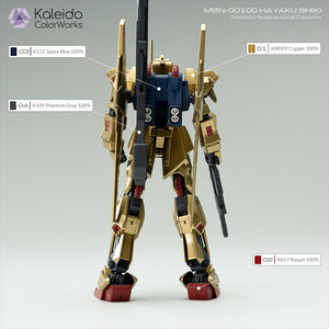これは、バンダイのMSN-00100 百式ガンダムモデルキットをカレイドカラーワークス - メカシリーズのカラーで再現/リペイントしたバージョンです。