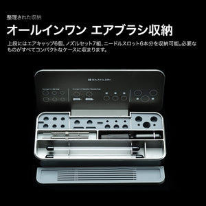 Gaahleri ProCareキットのご紹介。プロから本格的な愛好家まで、あらゆるエアブラシのメンテナンスと保管をワンストップで実現する究極のオールインワンソリューションです。精密成形されたボディと、ダンピングヒンジ設計の金属製蓋を備えたProCareキットは、作業スペースに安定性、耐久性、そして精密さをもたらします。