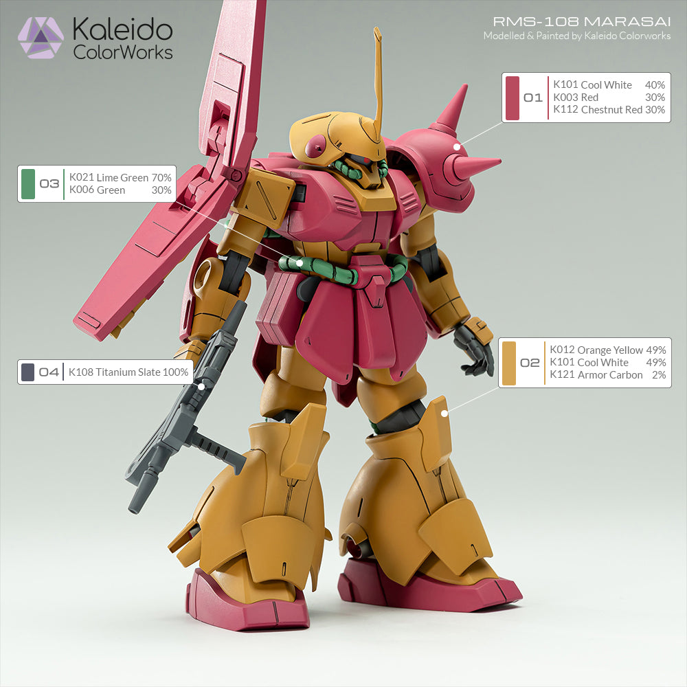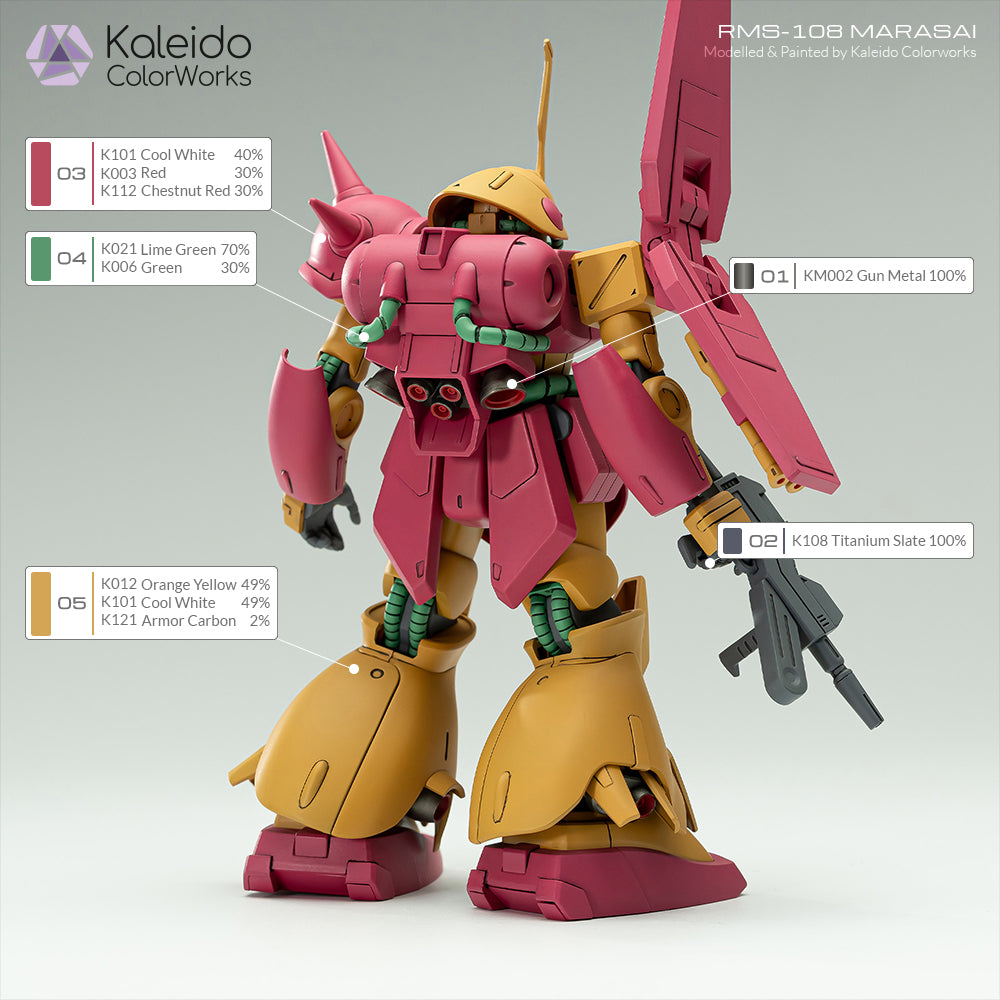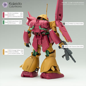 これは、カレイドカラーワークス - メカシリーズのカラーを使用した、バンダイのRMS-108 マラサイガンダムモデルキットの再現/リペイントバージョンです。