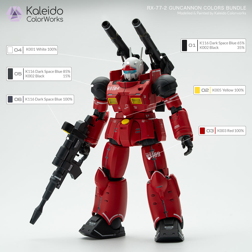 RX-77-2 ガンキャノンのプラモデルをカレイドカラーワークスの色で再現・リペイントした商品です。