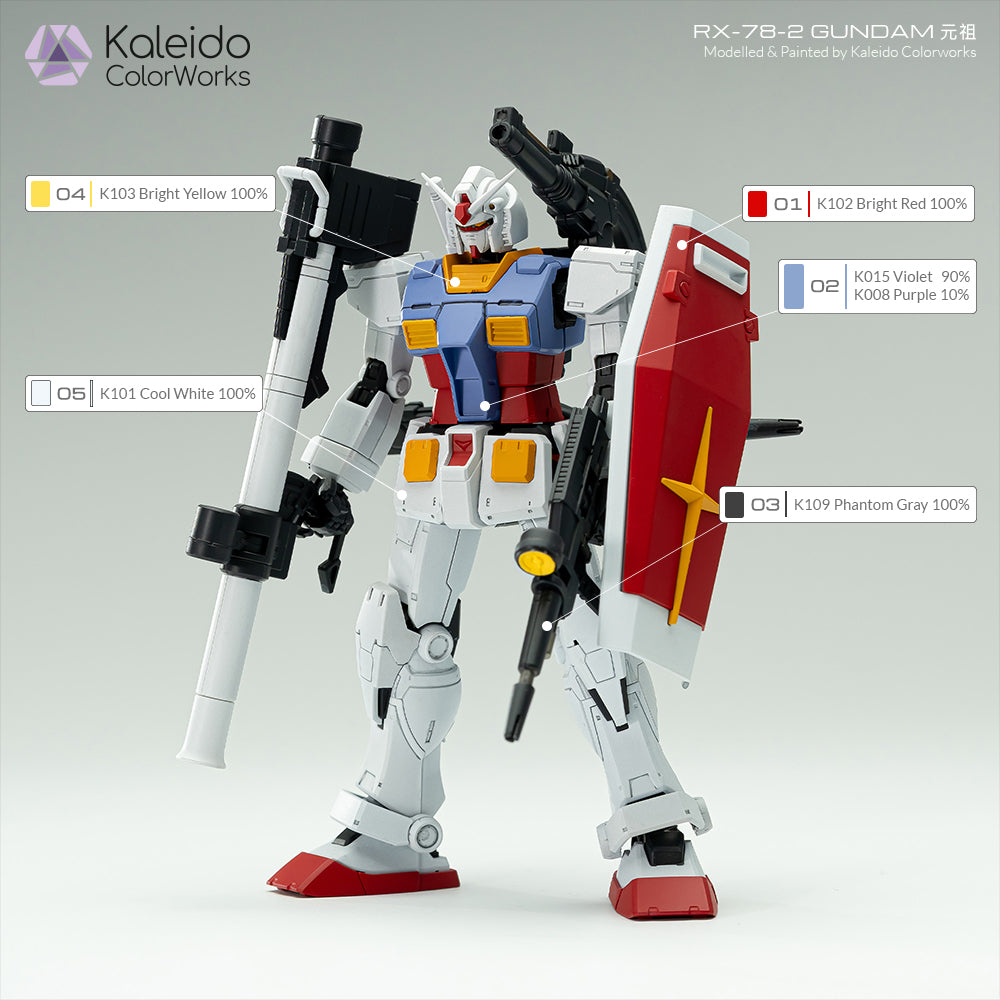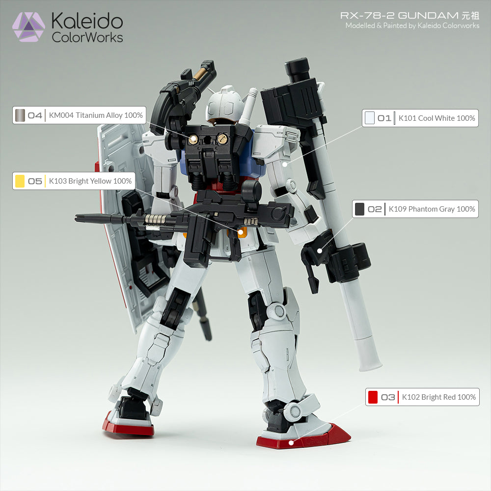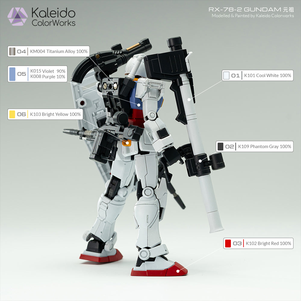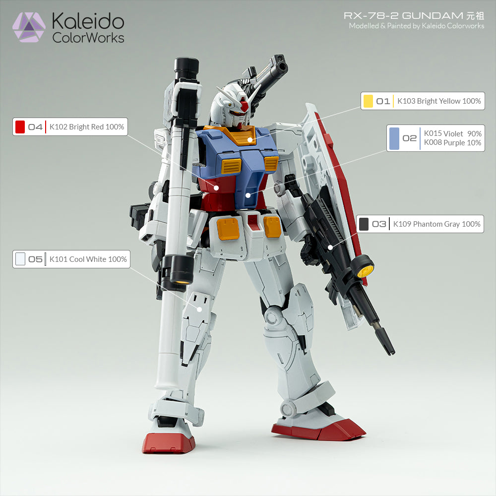 これは、バンダイのRX-78-2 ガンダムモデルキットをカレイドカラーワークス - メカシリーズのカラーで再現/リペイントしたバージョンです。