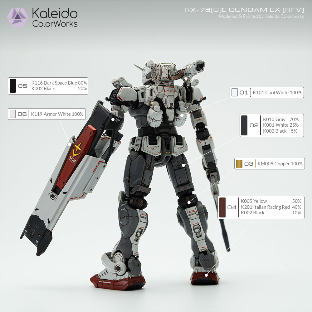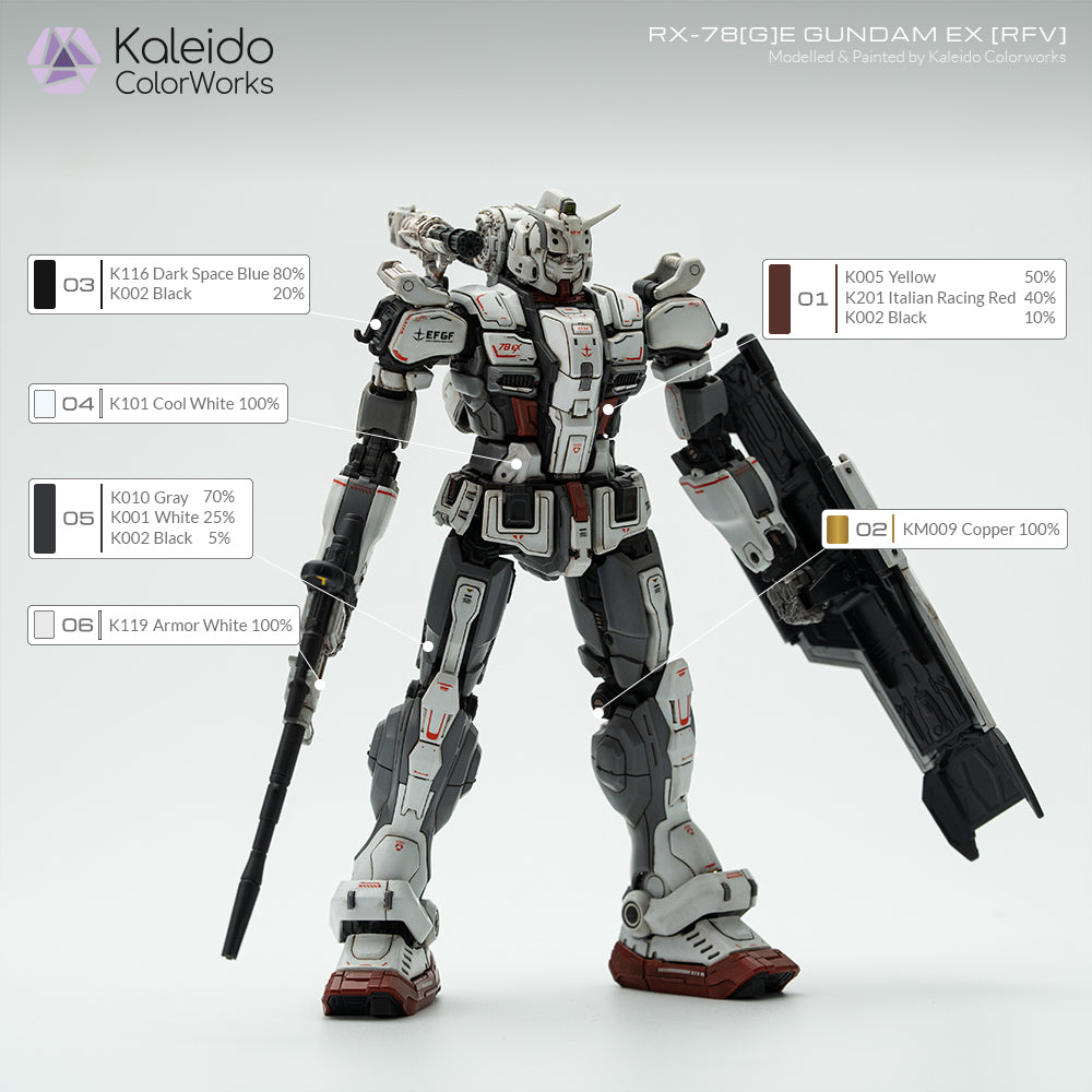 RX-78(G)E ガンダム EXモデルキットをカレイドカラーワークスカラーで再現・リペイントしたものです。